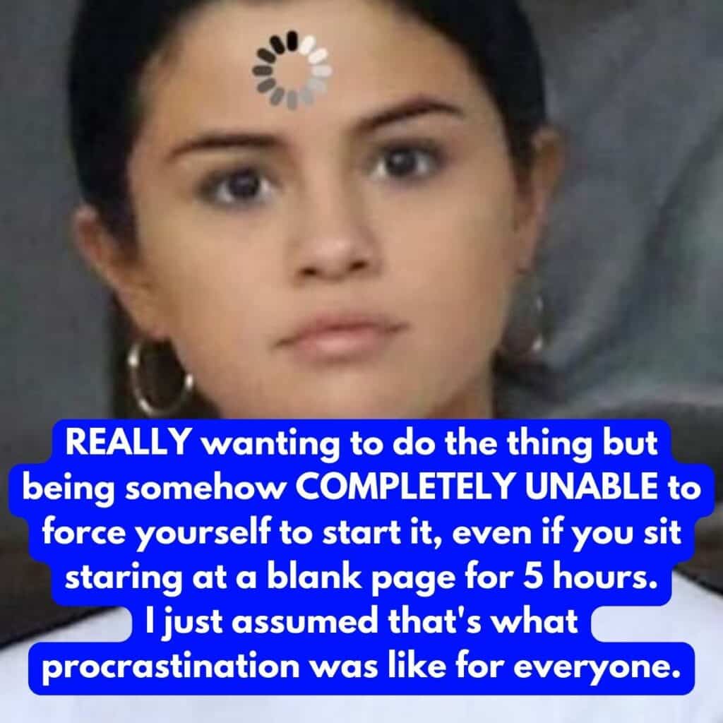This person always thought that procrastination was the same for everyone. As they grew older, they quickly realized that not everyone stares at a blank page for five hours instead of starting their final assignment for class. Whoops! They explained that they often feel the urge to do something but simultaneously feel completely unable to force themselves to start.