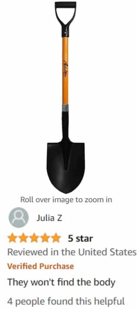 But sometimes, people shouldn’t even leave reviews. One customer wrote, “they won’t find the body” and that’s it. Pretty alarming stuff for your average Tuesday afternoon browsing the web. The more alarming thing is that four different people found this review helpful…